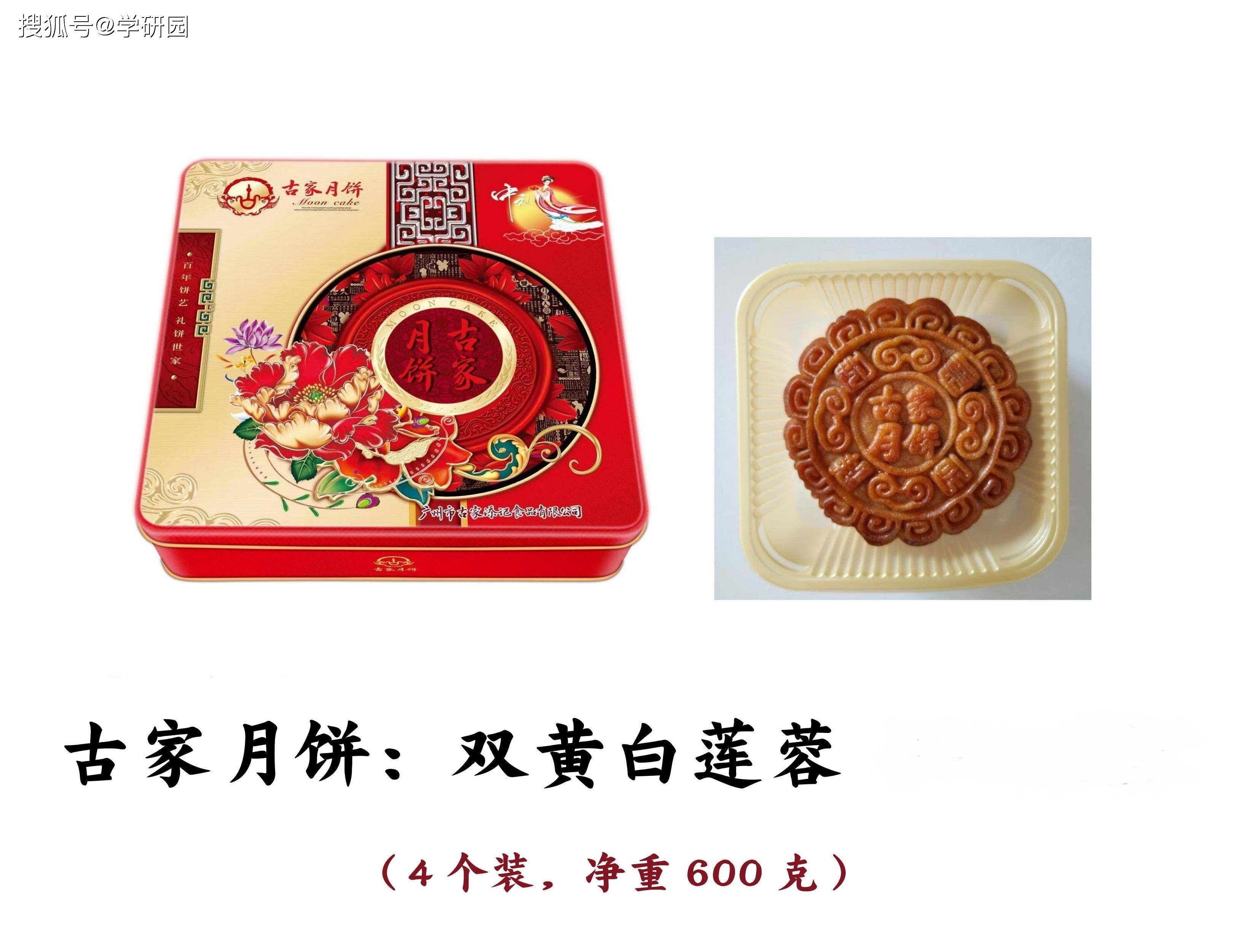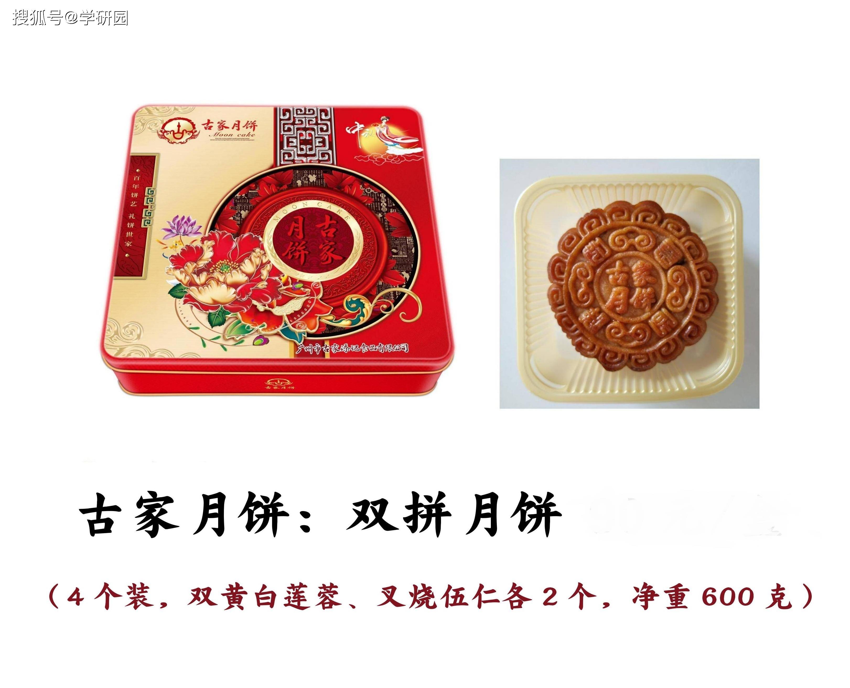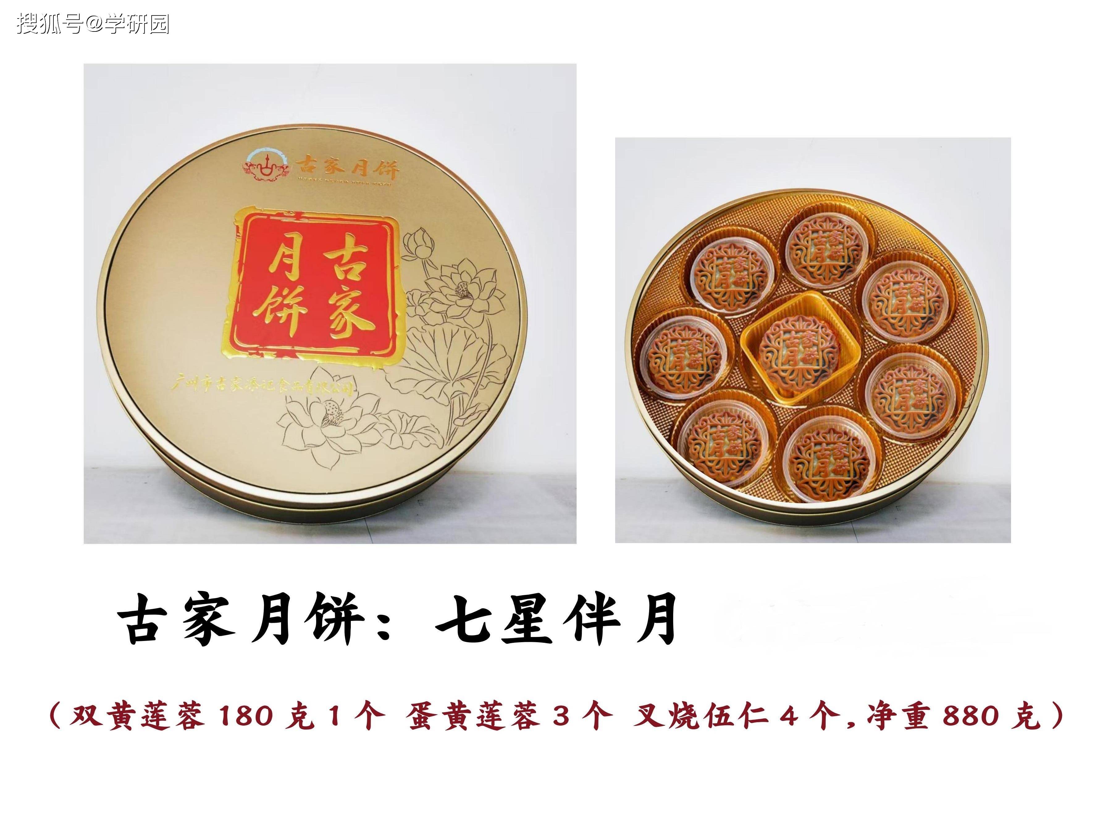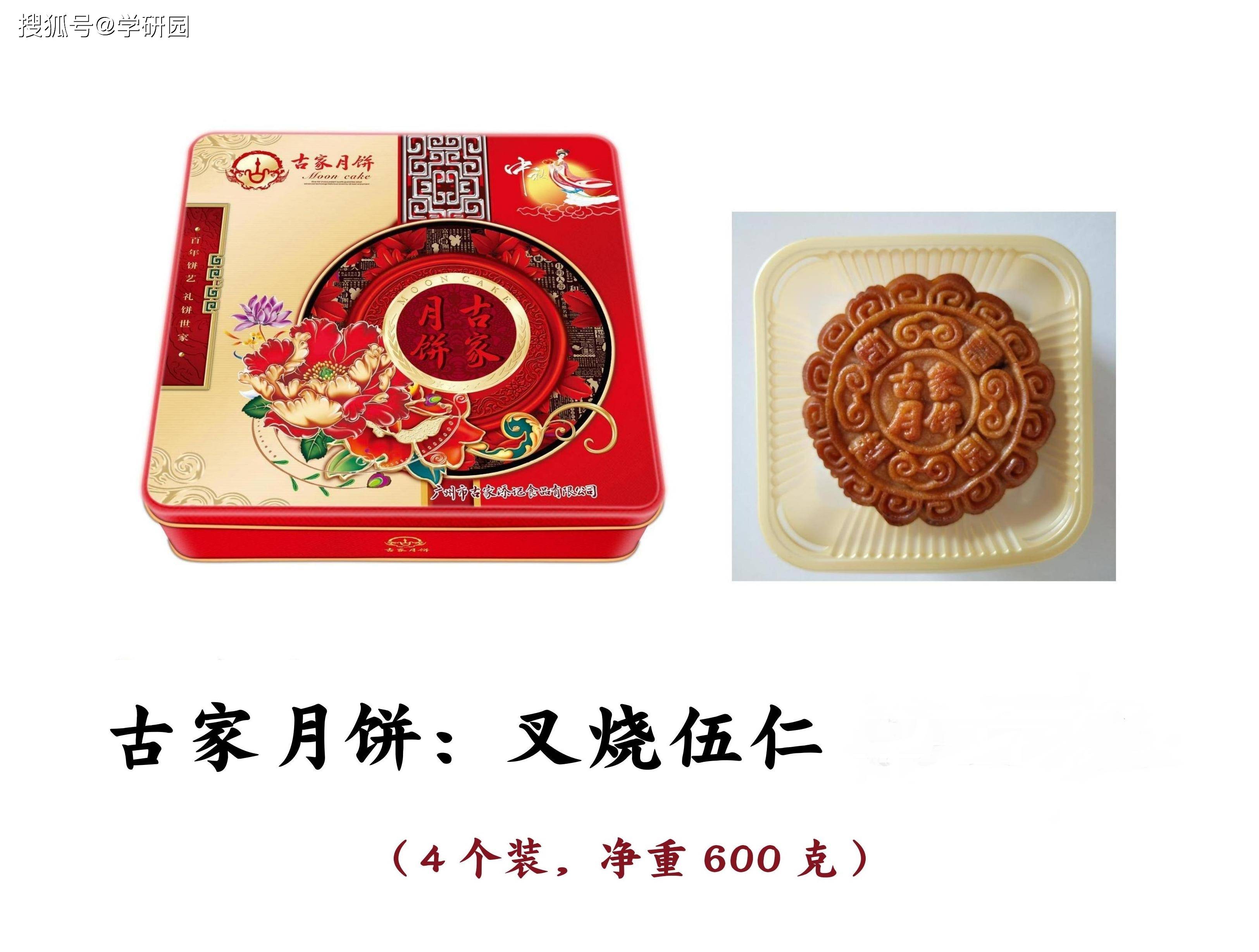 古家月饼主要品类有:双黄白莲蓉月饼、叉烧伍仁月饼、叉烧皇五仁月饼、七星伴月,等等
